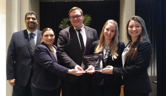 The St. John’s team of Cristen McGrath '18, captain Cory Morano '18, Mark Niedziela'18, and Erin Seery '18 participated in both the written pleadings and oral arguments. Another team member, Bryant Gordon '18, participated in drafting the written pleadings. With guidance from former competitors Laura Raheb '16 and Shaun Hiller '15, the team earned a 3-1 record in the competition’s preliminary rounds to advance to the quarterfinals. The student teammates are all members of the New York International Law Review.
