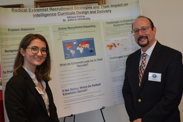 St. John’s University faculty and students were well represented at the conference. Dr. Bernard Jones co-presented a paper with Doctor of Professional Studies (DPS) student Rosemary Hartofilis titled “Utilizing Community-Based Intelligence to Increase Resilience in Vulnerable Populations at a National Level.” Prof. Christopher Cleary served as Vice-Event Chair, presented a paper title, “Intelligence in Support of Anti-Terrorism Strategies in New York,” and chaired a panel titled “Adaptation of intelligence education to better serve stakeholders at all levels of government, academia, and the private sector.” DPS student Kyle W. McDonnell presented his paper “Considerations & Implications of Utilizing Social Media as Intelligence,” and Chair a panel on “Adaptation of intelligence education to better serve stakeholders at all levels of government, academia, and the private sector.” Dr. Robert Gonzalez chaired a panel titled, “Initiatives to strengthen the identity and legitimacy of intelligence studies as a recognized academic discipline on a global scale.” Dr. Brian Harte chaired the student paper panel where St. John’s undergraduate student Milana Petras presented her paper titled “Radical Extremist Recruitment Strategies: Special Topics in Homeland Security and Intelligence Curricular Design,” and undergraduate student Jack Lincoln present his paper titled, “An Examination of the Methods and Prioritization of Intelligence Collection by select Non-State Actors.”