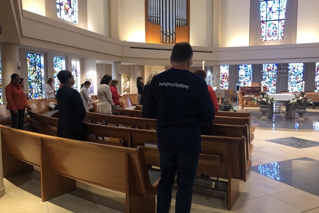 Sr. Patricia Evanick, DC ’97GEd, Campus Minister for Faith Formation and Leadership, who coordinates the VMC program with Ms. Pesce and is a graduate of the program herself, stressed that her faith demands she see God in other people. “If that’s true, then I’m going to work to help change their situation and change my own heart. You have to walk the talk. I learn more from the people I’m in community with.”
