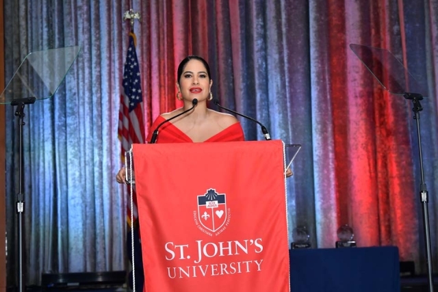 Gloria Pazmino ’10CPS, CNN Newsource National Correspondent, served as the evening’s Master of Ceremonies. During her remarks, she discussed the many signs that point to St. John’s University’s bright future, including the state-of-the-art St. Vincent Health Sciences Center, under construction on the Queens, NY, campus, and due for completion next summer.