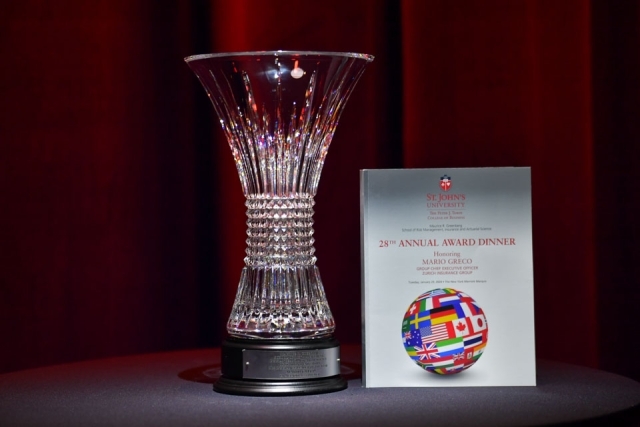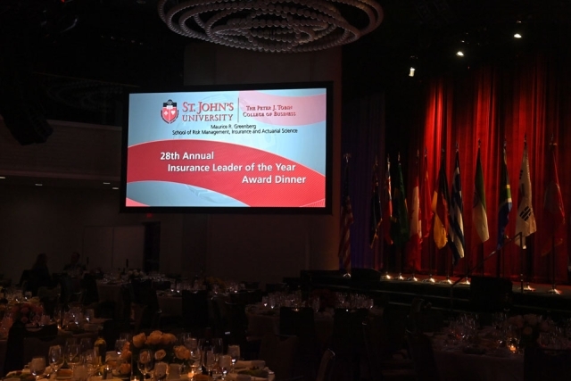 Earlier in the evening, Rev. Brian J. Shanley, O.P., President of St. John’s, in his opening remarks, referred to GSRM as “one of the crown jewels of St. John’s.” He thanked Mr. Greco and all the attendees for their generosity, and encouraged the gathering of titans of the insurance industry to continue to “hire, mentor, and provide meaningful opportunities for St. John’s students.”
