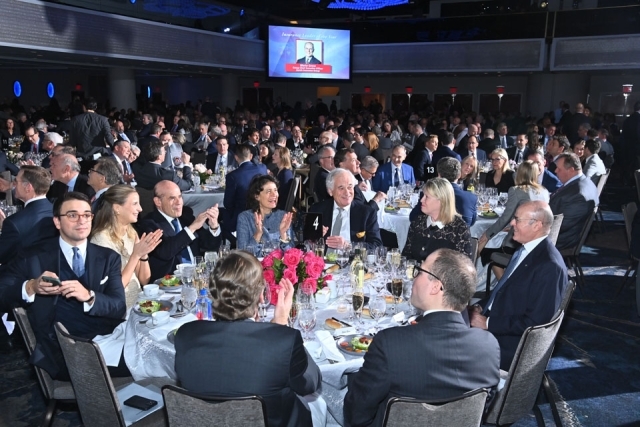 In a festive Manhattan ballroom hosting a venerable collection of some of the most accomplished members of the insurance industry, St. John’s University’s Maurice R. Greenberg School of Risk Management, Insurance and Actuarial Science (GSRM), part of The Peter J. Tobin College of Business, hosted its 28th annual Insurance Leader of the Year (ILOTY) Award Dinner on January 23, raising a total of $2,912,000 to fund student scholarships and support academic program initiatives. The event, held at the New York Marriott Marquis, drew a crowd of nearly 1,100 members of the global insurance industry, senior leadership from the University, students, faculty, business executives, guests, family, and friends.