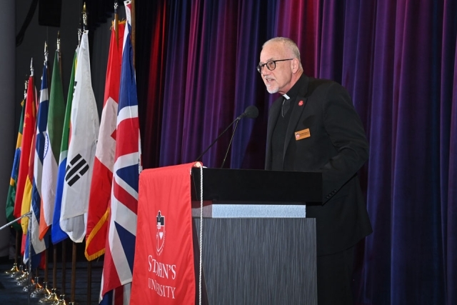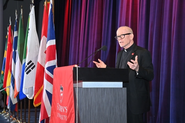 Fr. Shanley emphasized the distinctiveness of a St. John’s business education and highlighted how the University embeds the training of students in the larger framework of a Catholic, liberal arts education that requires theology and philosophy.