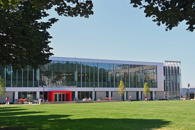 Beaming with pride as students filed in and out of the shiny, new building was Brian Baumer, Associate Vice President, Campus Facilities and Services. “The opening of the St. Vincent Health Sciences Center marks a transformative milestone for the facilities department at St. John’s, showcasing a state-of-the-art environment that promotes sustainability, efficiency, and excellence in education,” remarked Mr. Baumer. “This modern, energy-efficient building, featuring geothermal heating and cooling, advanced labs, and flexible learning spaces, highlights the facilities team’s commitment to creating an innovative and inspiring campus for all. We have set the bar high and look forward to other opportunities on campus to shine, innovate, and inspire.”