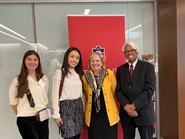 Dean Norean Sharpe, Dr. Jay Nathan and visiting Ph.D. candidates from Al-Farabi National University of Kazakhstan during their visit in 2019 .