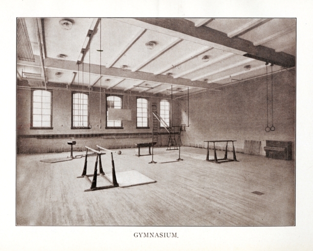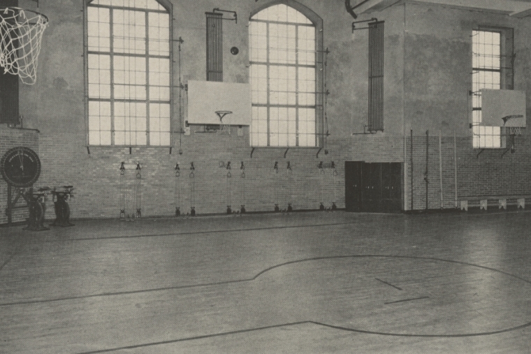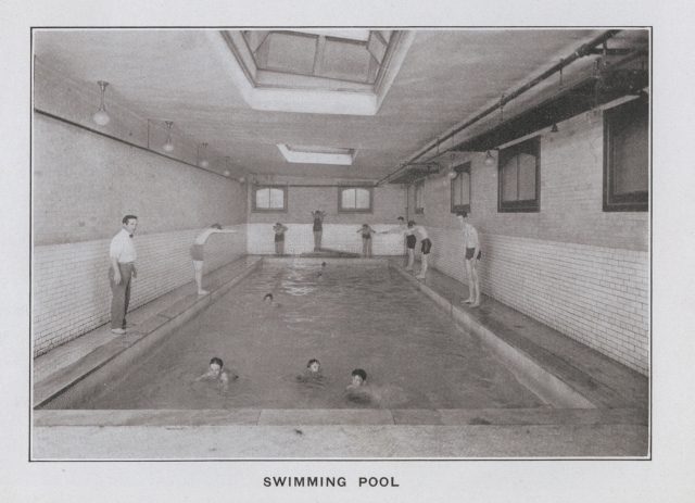 In 1908, a new wing was added to College Hall (the closest section to the Church) which included science classrooms, a gym, and a swimming pool. That section was later torn down and replaced with the DeGray Gymnasium in 1932.