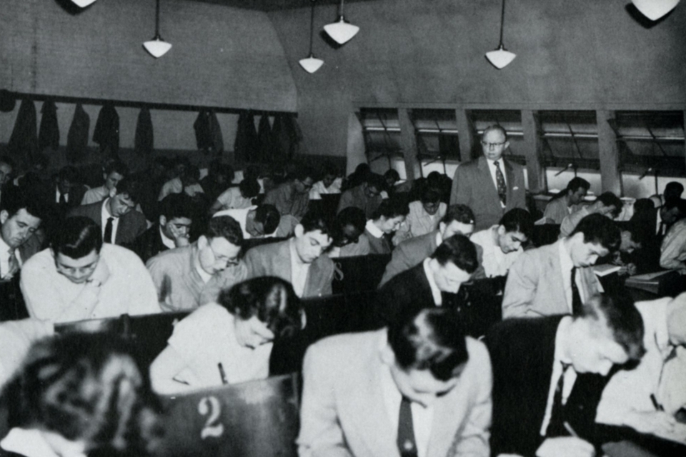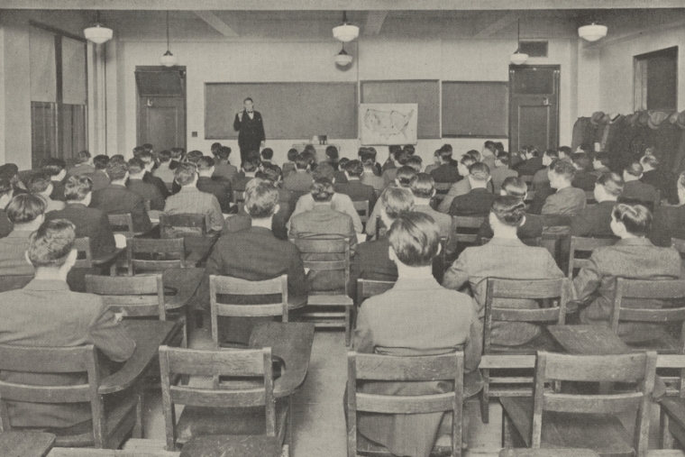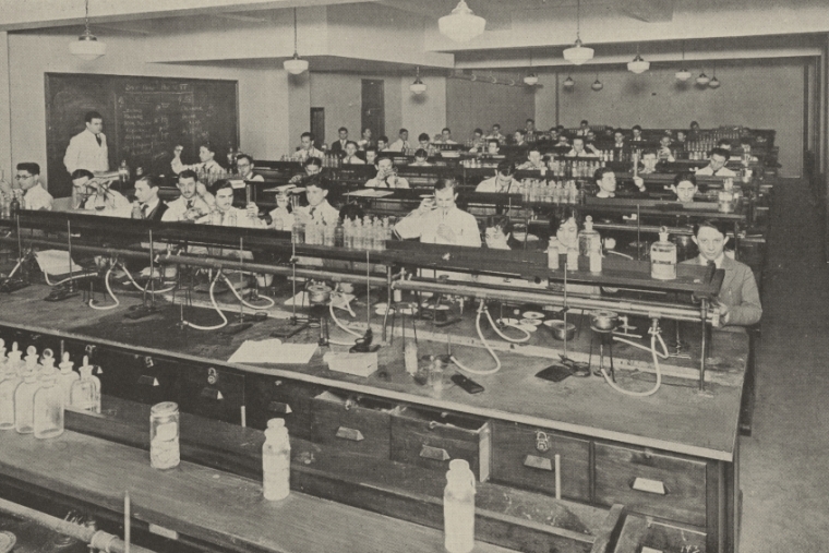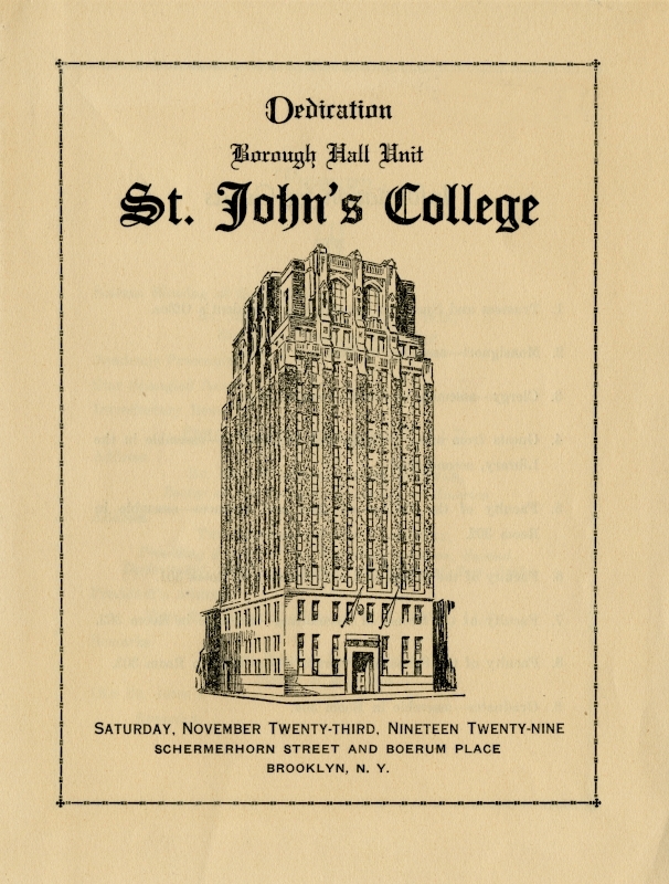 When the School of Law was founded in 1925, classes were held in rented quarters on Court Street in downtown Brooklyn. In 1927, two additional professional colleges were founded: the Borough Hall Division of the College of Arts and Sciences, and the School of Accounting, Commerce and Finance. These colleges also rented space on Court Street and Joralemon Street. In 1928, St. John’s acquired property on the corner of Schermerhorn Street and Boreum Place. After just 13 months of construction, the new million-dollar “skyscraper” campus opened with a formal dedication ceremony on November 23, 1929. The building also became home to the new College of Pharmacy upon its founding in 1929.