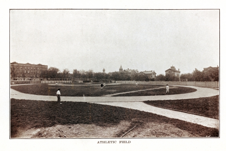 The open field in front of the Church was the site of numerous athletic events. The field was renovated in 1910 to include a running track.