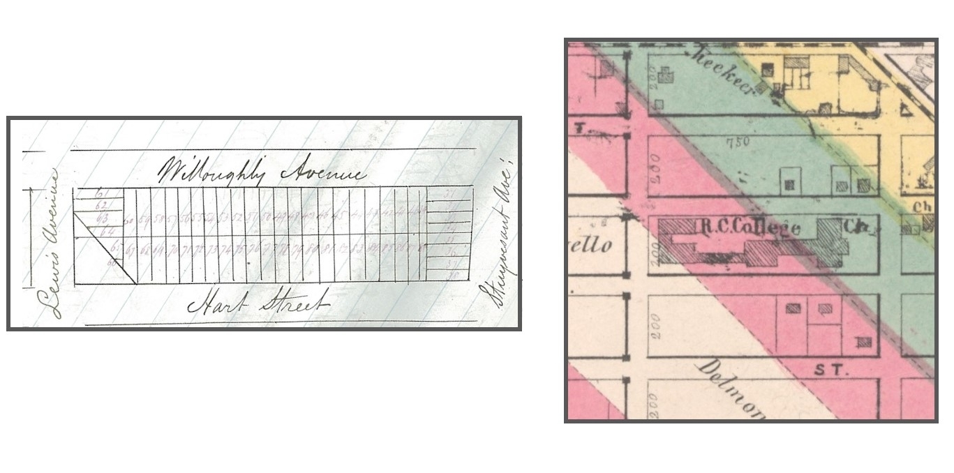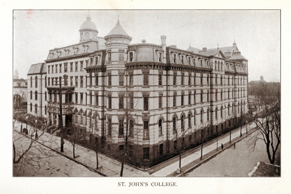 The land for St. John's first campus was purchased by Rev. Stephen V. Ryan, C.M. on November 14, 1867 from Thomas and Sarah Palmer, and Sarah and Isaac Quackenboss for $35,800. The purchase consisted of approximately sixty lots, an entire city block, between the proposed Willoughby Avenue, Hart Street, Lewis Avenue, and Stuyvesant Street. Rev. Stephen V. Ryan, C.M., who would soon become the second Bishop of Buffalo, New York, later willed the property to St. John's College.