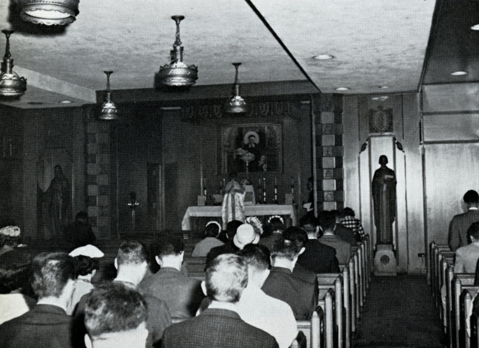 In 1950, despite the extra space from the Quonset huts, more space was needed, so the building at 72 Schermerhorn Street was purchased. Sometimes called “The Annex,” this space housed a new library in 1951 and the Chapel of St. Vincent de Paul in 1952.