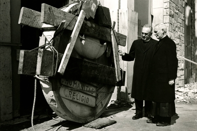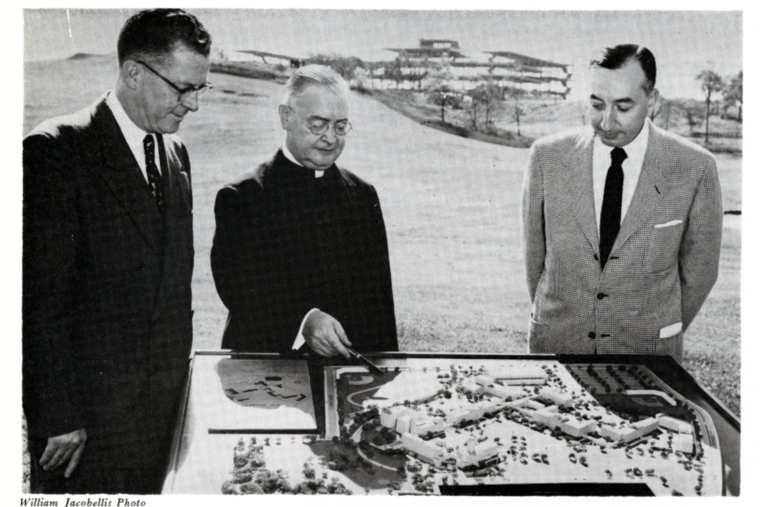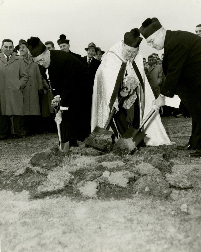The groundbreaking for St. Albert the Great Hall (also known as the Science-Pharmacy building) and St. Vincent de Paul Hall (also known as the Faculty Residence or the Monastery for the Vincentian Fathers), took place just after the annual commencement ceremony on June 10, 1956. The Solemn Dedication Ceremony for the two buildings was held on November 6, 1958. Silent footage of the ceremony can be viewed online here.