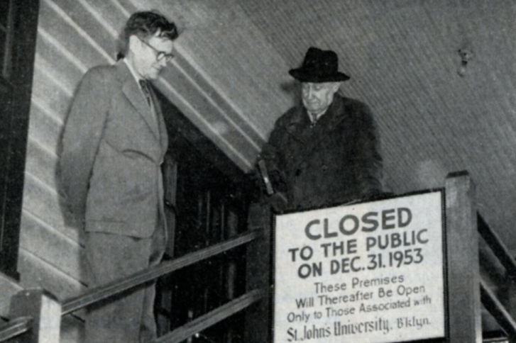 The groundbreaking of the first building on the Hillcrest campus, St. John Hall (also known as the Liberal Arts Building) took place on February 11, 1954. On September 28, 1955, the Annual Alumni Career Clinic was held in the new Liberal Arts Building, and the "Torch of Knowledge" relay run was completed by the varsity cross-country team, bringing the traditions of the old Lewis Avenue campus to the new Hillcrest site. Classes began at the new “Long Island Division” on October 3, 1955, with an incoming freshman class of 561 students.