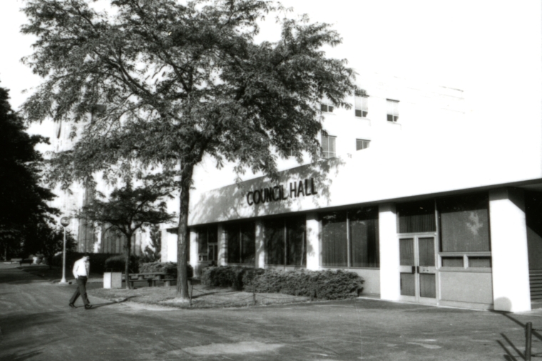 Council Hall, located above the Chapel of Our Lady of Lourdes (between St. Augustine Hall and Newman Hall), was dedicated in October 1985. It was named in honor of the members of the University Council. Today it is the home of the Welcome Center.