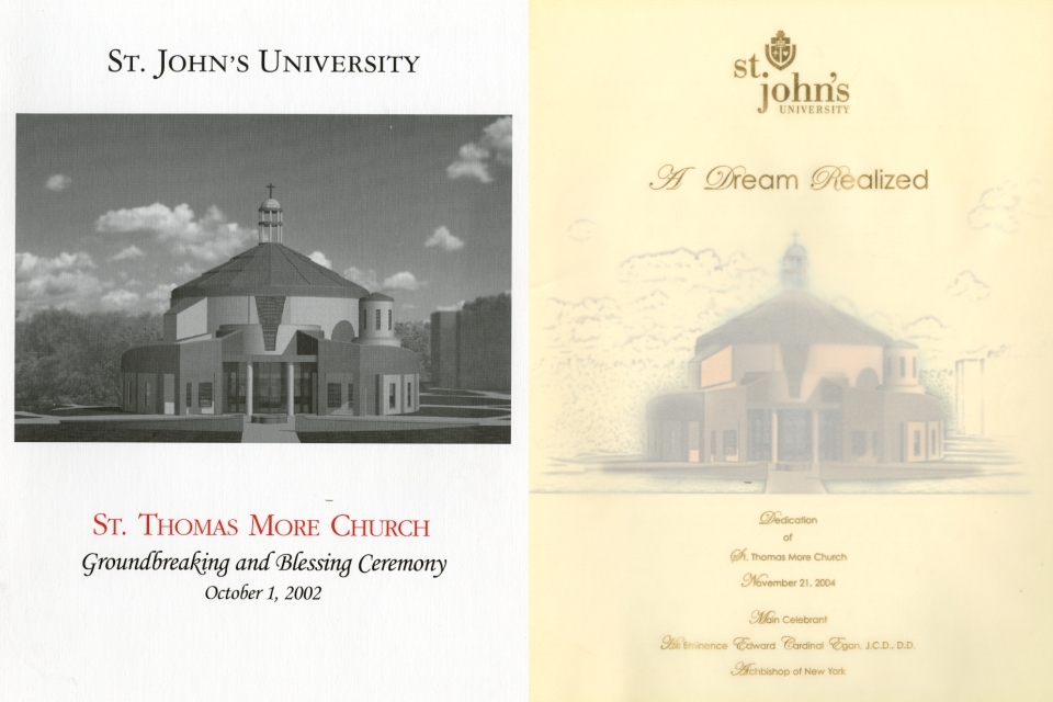 The Cross Raising Ceremony and Procession from the Chapel of Our Lady of Lourdes was held on April 13, 2004. The Opening School Mass, which was the celebration of the First Mass in St. Thomas More Church on the Feast Day of St. Vincent de Paul, was celebrated on September 27, 2004. A formal dedication ceremony took place on November 21, 2004.