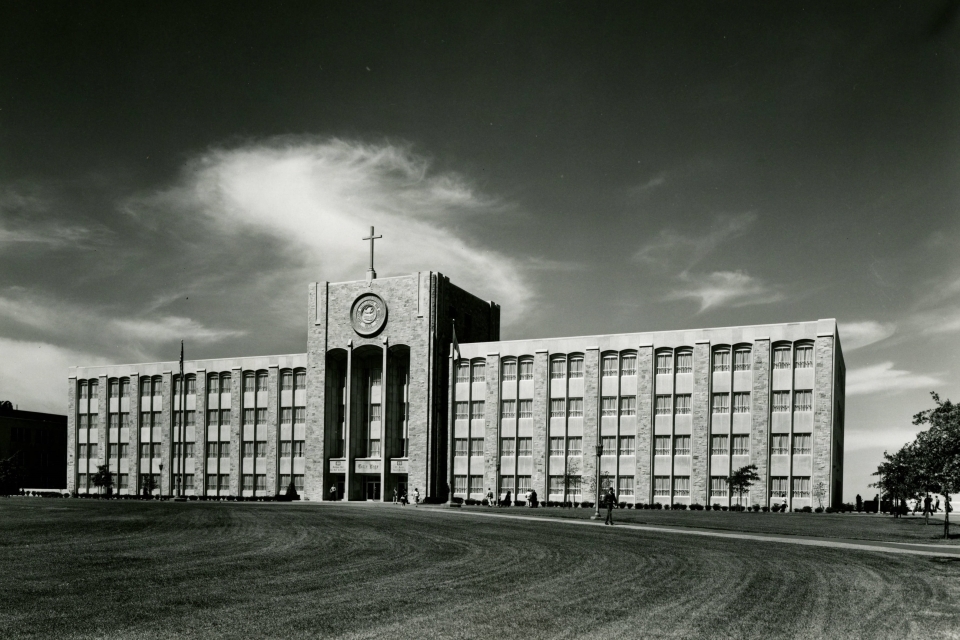 On October 7, 1955, the Very Rev. John A. Flynn, C.M., president, celebrated the first mass of the school year and gave the liturgical blessing for the Long Island Division in the new Liberal Arts Building. Then on December 7, 1955, the building was dedicated to the Immaculate Heart of Mary after the cornerstone laying by Most Rev. Thomas E. Molloy, Archbishop-Bishop of Brooklyn and Chancellor of the University.