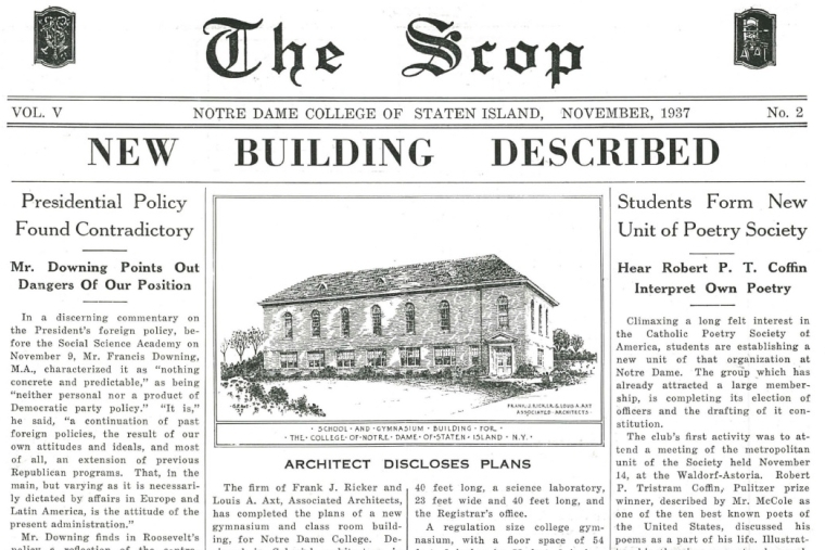 The John Gans Family Estate, located on Grymes Hill, was purchased for Notre Dame College of Staten Island in 1934. The Gans family's home, renamed Flynn Hall after the founder of the college, Sister Helen Flynn, became the first campus building.