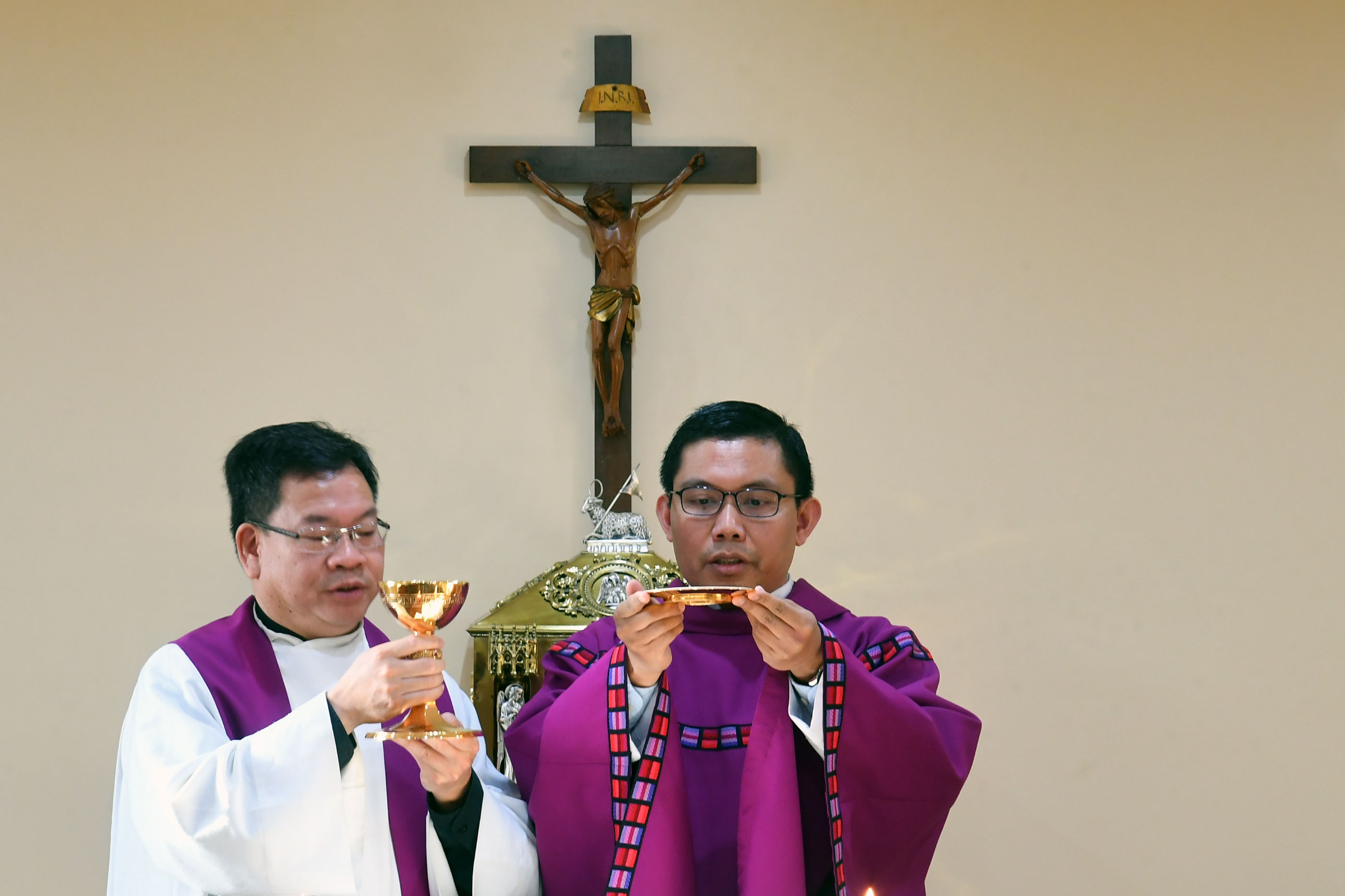 During his homily at a recent evening Mass, Rev. Paulus Dwintarto, C.M., challenged the young men to see God in the faces of all they serve, whether they are homeless, abandoned, or poor. He recalled that St. Vincent de Paul (the founder of the Congregation of the Mission) did just that. “It is easy to find God in a glorious moment,” but it can be challenging when confronted with someone who has led a hard life, he asserted. “In my experience, it is easy to find God when I serve the poor.”