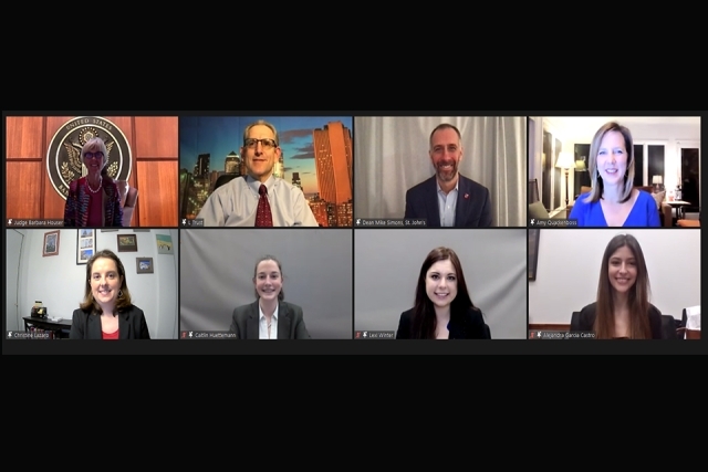 Looking back on the virtual event as one of its organizers, Professor Christine Lazaro credits the longtime collaboration between St. John’s Law and the American Bankruptcy Institute (ABI) on the nation’s premier bankruptcy moot court competition with its success in this challenging pandemic year. “It was important to find a way to continue the Competition, and ABI, under the leadership of Executive Director Amy Quackenboss, was a true partner as we navigated the transition from an in-person to a virtual format,” she says. “With their help, we were able to innovate in ways that will benefit the Competition for years to come.”
