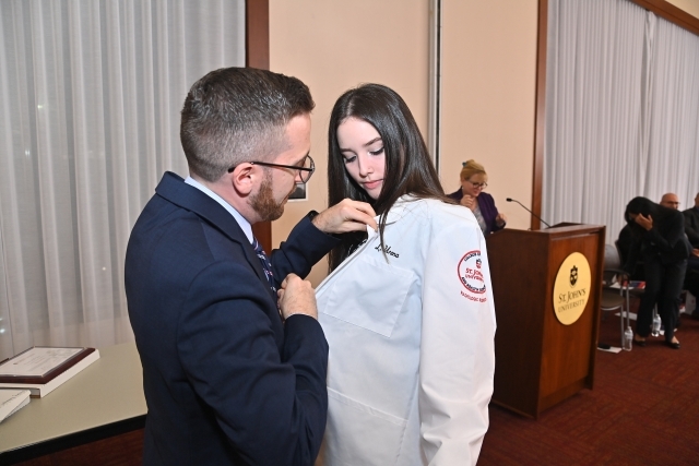 The White Coat Ceremony is a symbolic rite of passage for students of the healing arts that signifies a professional relationship with other colleagues who provide health care services. Contributing to the care and healing of others is a privilege and a responsibility. The white coat they wear is more than a familiar lab coat: it is a cloak of caring, compassion, and service.