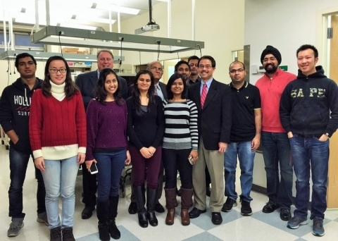 Pictured (from left to right): Nayan Solanki, Nitprapa Siriwannakij, Dr. Russell DiGate (Dean, College of Pharmacy & Health Sciences), Ankita Shah, Dr. Abu Serajuddin (Professor, Industrial Pharmacy), Anuprabha Meena, Dr. Mohammed Rashel (Post-doctoral Fellow), Amol Batra, Dr. Conrado "Bobby" Gempesaw (President, St. John’s University), Suhas Gumaste, Dr. Simerdeep Singh Gupta (Post-doctoral fellow), Yan Sun