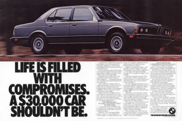 “We'll sell it to our own generation, the ones who love engineering and performance, people looking for a personal relationship with their mechanics. We'll call them 'Affluent Activists' when we pitch the account, and we'll call the product 'The Ultimate Driving Machine.' - Martin Puris