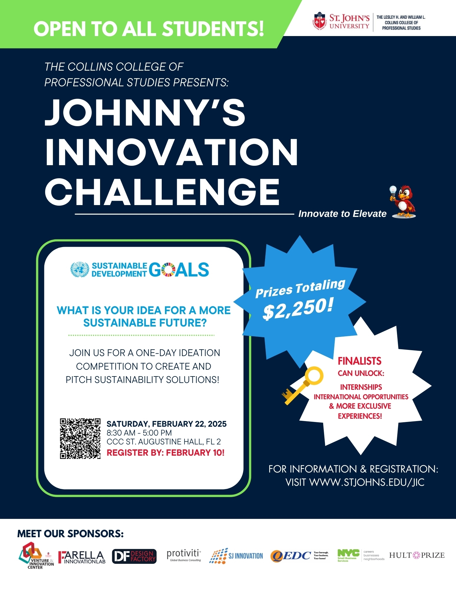Johnny’s Innovation Challenge is designed to foster innovative solutions aligned with the UN Sustainable Development Goals (SDGs). Interdisciplinary teams will work together to develop and present their ideas to a panel of expert judges.