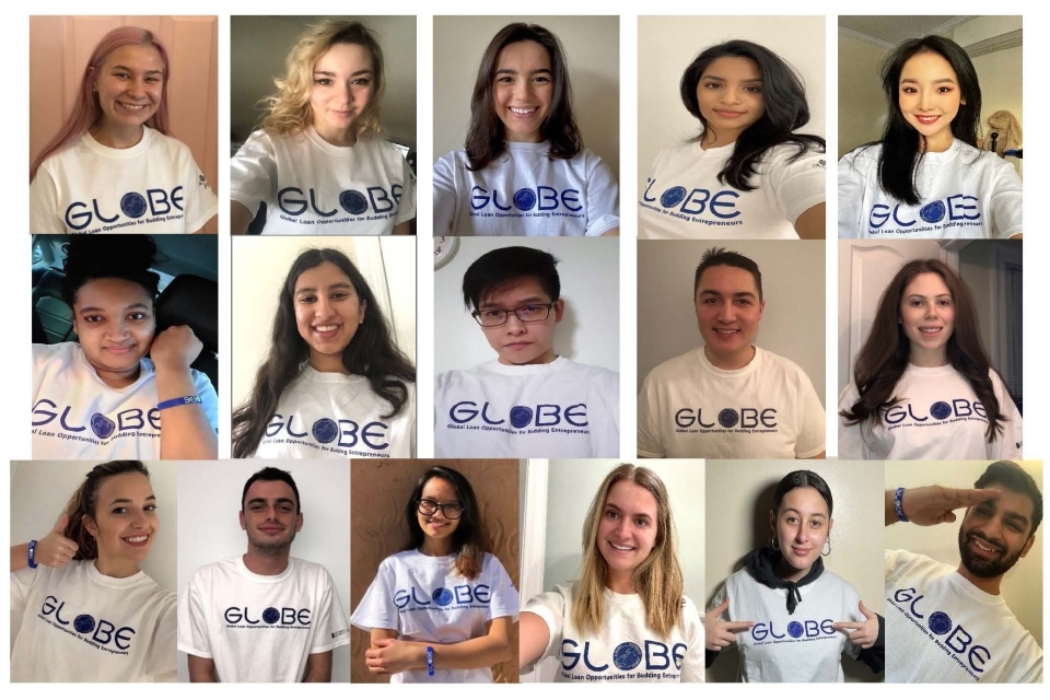 Each semester, students enrolled in the Global Microloan Program will update this site with their weekly program logs. The Spring 2021 student teams include Enterprise Development and Program Impact Audits; Finance and Risk Assessment; Marketing and Fundraising; and Technology and Communications. ln order for this semester's class to be featured (without wearing masks) during the pandemic, we have made a collage of their selfies sporting their GLOBE tees!