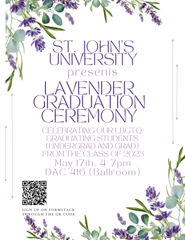 Any graduating St. John's student (undergraduate, graduate, professional) who identifies as part of the wider LGBTQ+ community. Faculty and staff are also invited to participate in the celebration and will receive a card.