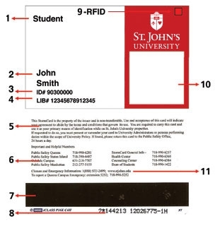 This StormCard is the property of the issuer and is non-transferable. Use and acceptance of this card will indicate your agreement to abide by the terms and conditions that govern its use. You are required to carry this card and use it as your primary means of identification while on St. John’s University properties. If requested to do so, you must present or surrender your card to University administrators or persons performing duties within the scope of University Policy. If found, please return this card to the Public Safety Office, 24 hours a day.