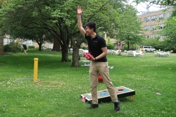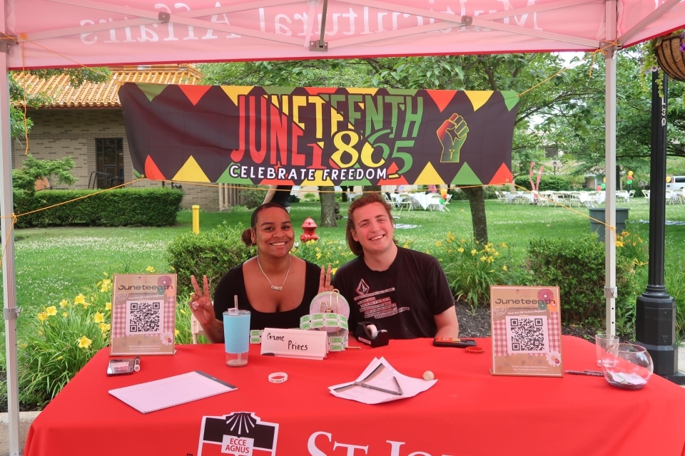All employees were invited to celebrate the Juneteenth holiday this year with a festival held on June 15 on the Queens, NY, campus. Organized by the Office of Multicultural Affairs, employees who stopped by the lawn adjacent to Sun Yat Sen Memorial Hall enjoyed a picnic-style lunch, lawn games, music, and a raffle. Prizes included Juneteenth-themed items such as shirts, caps, kente print canvas bags and bracelets, as well as St. John’s University picnic blankets and umbrellas. The weather cooperated and employees were able to spend time with colleagues and celebrate Juneteenth as a campus community.