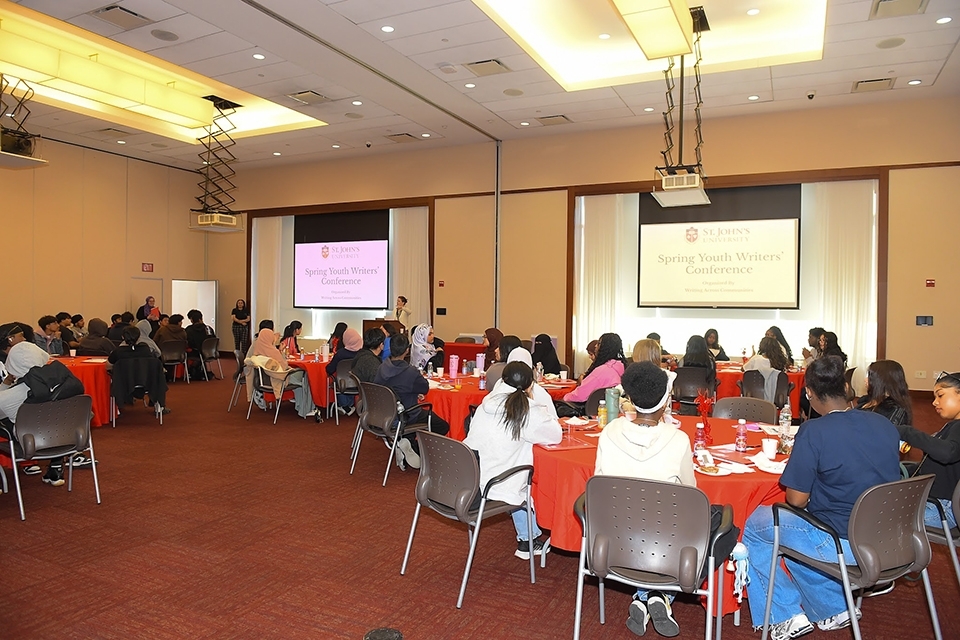 The Writing Across Communities program at St. John’s University hosted the Spring Youth Writers’ Conference—which focused on the power of writing, self-expression, and connection—on April 28 on the Queens, NY, campus. More than 50 high school students and chaperones from the High School for Community Leadership in Jamaica, NY, participated.