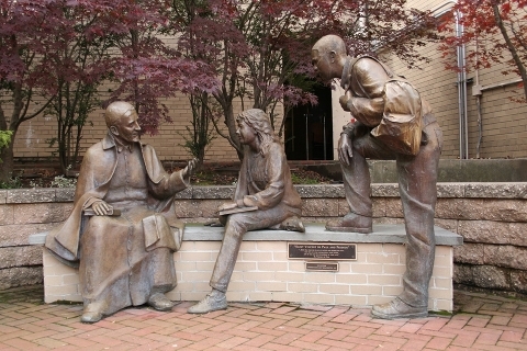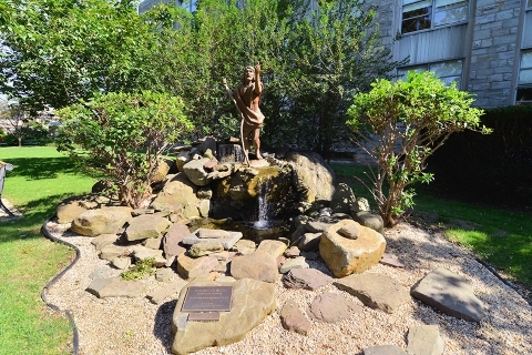 The statue of St. Vincent de Paul and students on Marillac Terrace, “The Way of Wisdom,” was sculpted by Sr. Margaret Beaudette, S.C. Similar statues are located on the campuses of St. John’s “sister” Vincentian institutions, DePaul Universityand Niagara University.