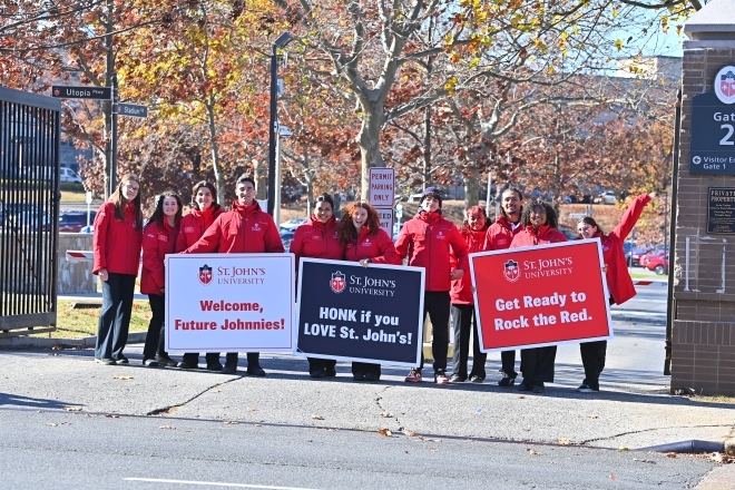 At St. John’s University, student ambassadors lead campus tours, represent the University at on- and off-campus events, and actively engage in the campus community. They assist with open houses, accepted student days, and other signature events. Often serving as a prospective student’s first impression of the University, ambassadors bring school spirit to life, making every interaction meaningful.