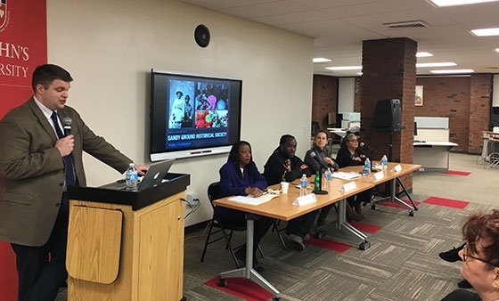 St. John’s University’s Staten Island campus held the last of its “Sandy Ground at St. John's: Faces of the Underground Railroad” events on December 12 with a presentation on the historic role Brooklyn’s African-American community played in revitalizing Bedford-Stuyvesant and the impact of history, arts, and culture on the fast-paced redevelopment of Staten Island’s North Shore. “Sandy Ground’s Past and Staten Island’s Future: A Colloquium on Arts, Education, and Historically Informed Community Development,” was the fourth in a lecture series sponsored by the New York Council for the Humanities.