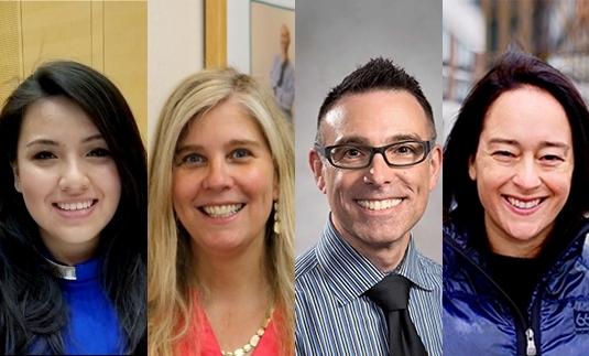 From left to right: Gabriela Calhorrano ’13CPS, ‘15G; Christine Casiano ‘90C, ‘91G; Paul-Brian McInerney ‘95C, ‘98G; and Heather Gautney ‘97G.