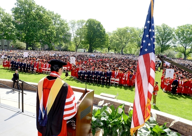 The undergraduate Commencement is a “rain or shine” event, and the University has 15,000 ponchos ready for distribution if rain is in the forecast. New York City Emergency Management monitors the region for extreme weather, which would be cause for postponement. To date, undergraduate Commencement has never been postponed due to weather.