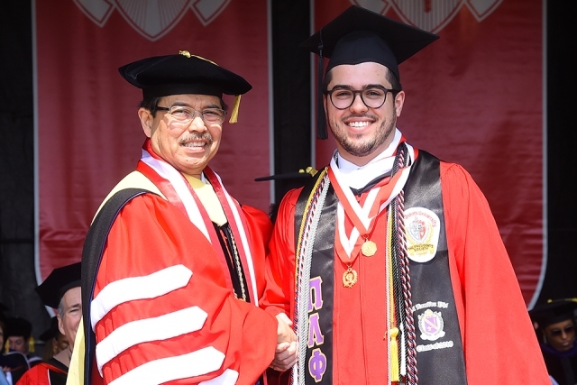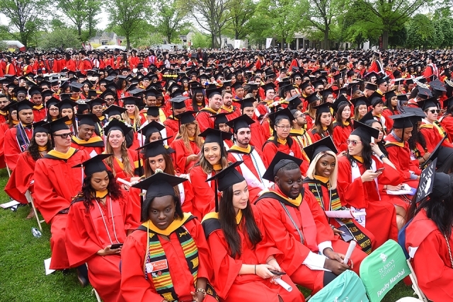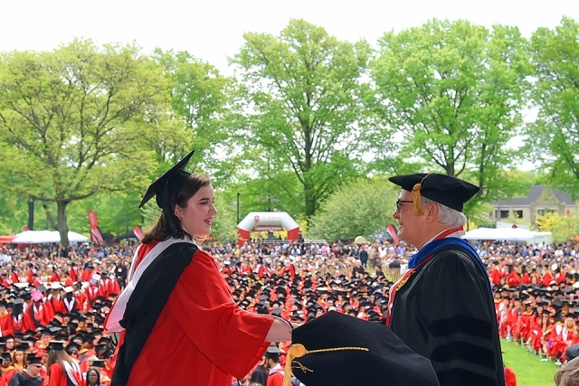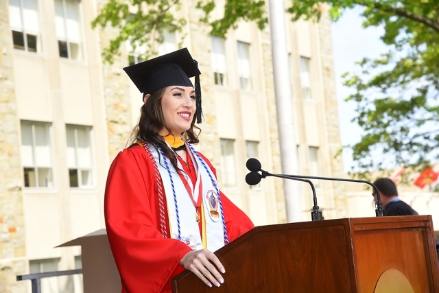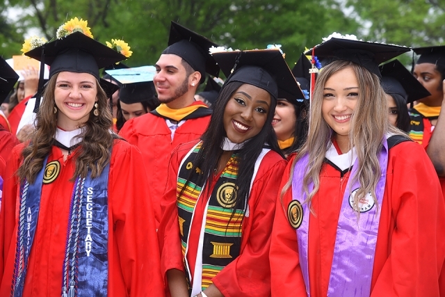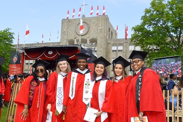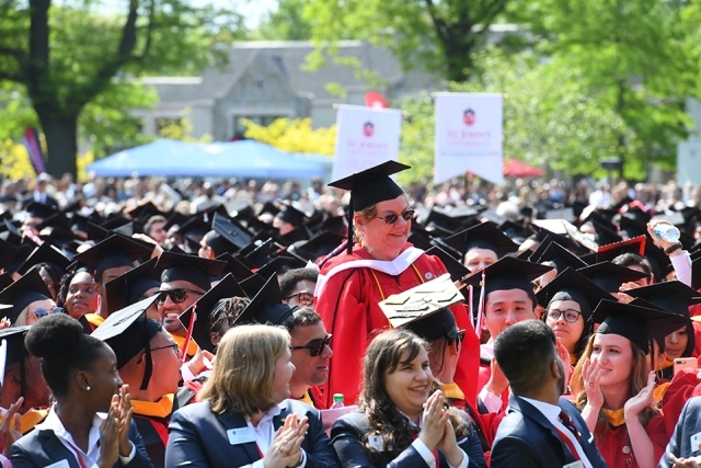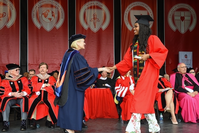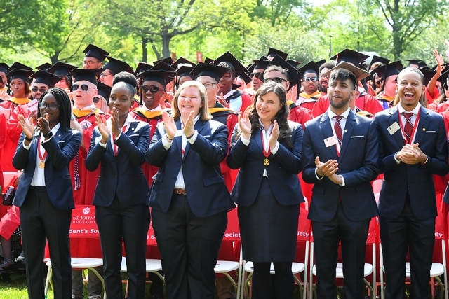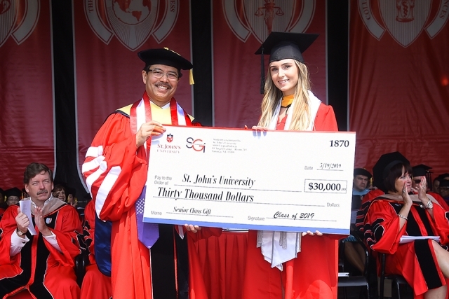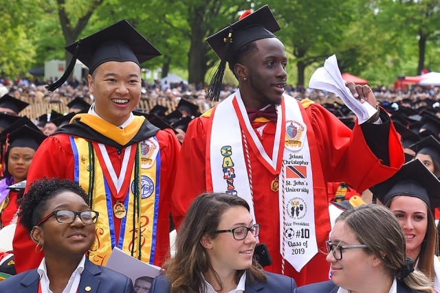 The Class of 2019 featured 60 student-athletes, as well as 128 international students from 35 countries. More than 600 students studied abroad. A total of 121 graduates served in the military; 13 were members of St. John’s Reserve Officers Training Corps (ROTC) Red Storm Battalion. More than 40 percent of the class graduated with honors: 296 summa cum laude, 296 magna cum laude, and 428 cum laude. In addition, 22 students graduated with a perfect 4.0 cumulative grade point average.