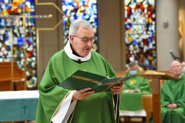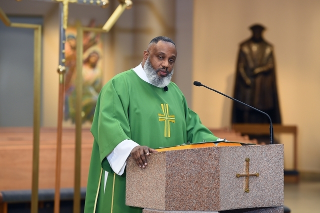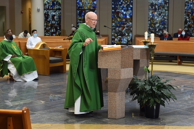 During his homily, Fr. Shanley reflected on four Beatitudes introduced by Jesus in Luke’s Gospel. “Jesus seems to be saying that poverty, hunger, grief, and persecution are somehow blessed,” he noted. “And there’s a sense in which he’s talking about a blessing to come—that those who are poor or hungry or grieving or persecuted will have a reward.”