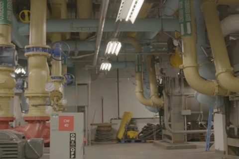 Likewise, the traditional, natural gas-fueled cooling towers at Montgoris Dining Hall are being replaced with state-of-the-art, water-cooled industrial “chillers” that use electricity to generate air conditioning. The goal of the multimillion-dollar effort is to reduce the use of fossil fuels on campus and instead focus on renewable energy sources such as electricity.
