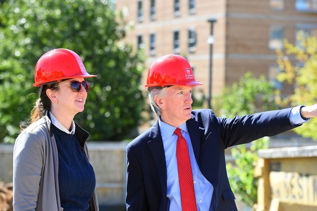 NYS Assemblymember Nily Rozic (25th AD) walked the sun-splashed campus grounds and stopped by the construction site of the future home of the St. Vincent Health Sciences Center. The center, currently in the early phases of construction, was awarded a $5 million New York State Higher Education Capital Matching Grant that will be used to help finance the construction of the new building—and future home of the University’s Bachelor of Science degree in Nursing program.
