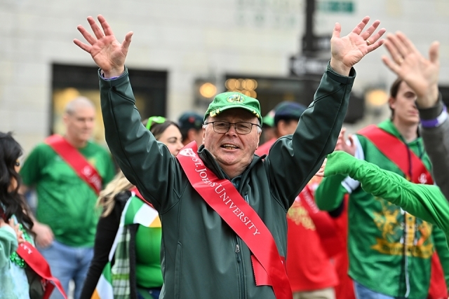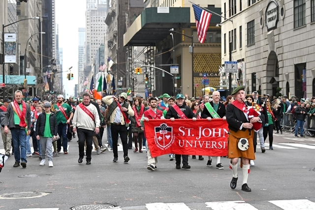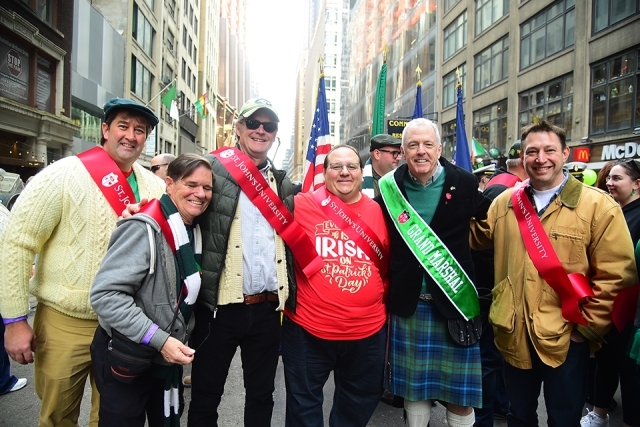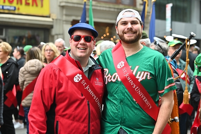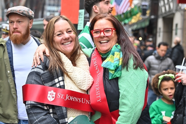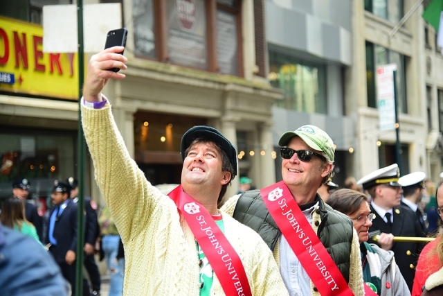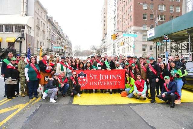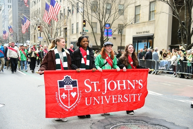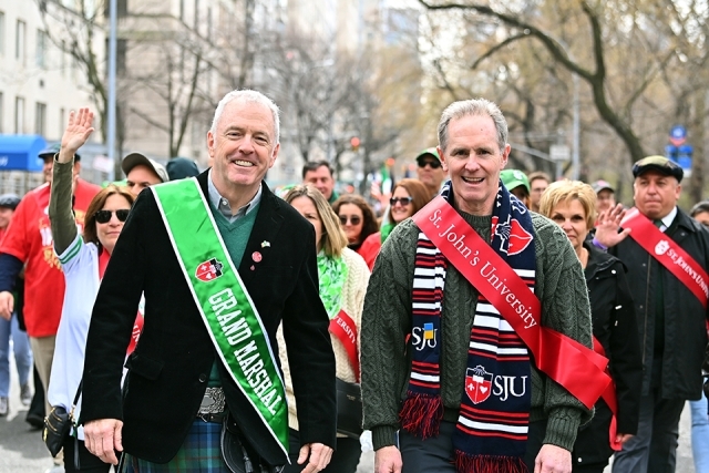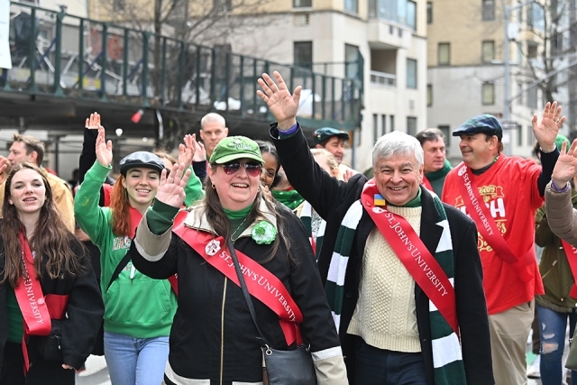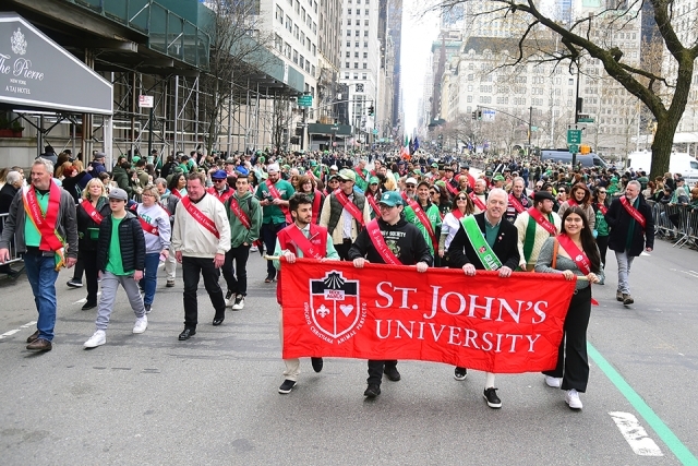 Brian Browne, Associate Vice President of University Communications and Public Affairs, has voluntarily coordinated St. John’s participation in the parade since 2005. “I have been marching in this parade my entire life, so for me what makes this day special is to see others experience the impact of the Irish spirit and the proud traditions of the parade for themselves—especially first-time marchers.”