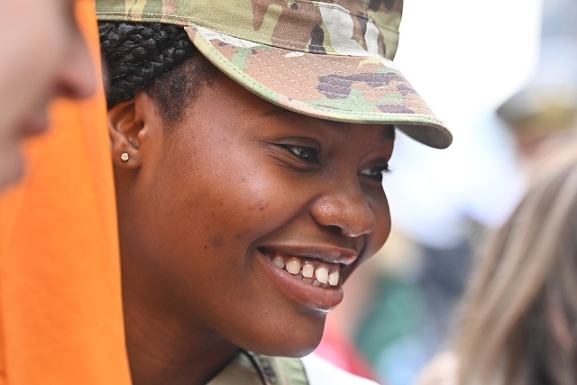 The St. John’s group was led by student color guard members of the Red Storm Battalion of the Reserve Officers Training Corps—and bagpiper Robert P. Lynch, Esq., ’77C, ’80L, Adjunct Professor, Division of Administration and Economics.