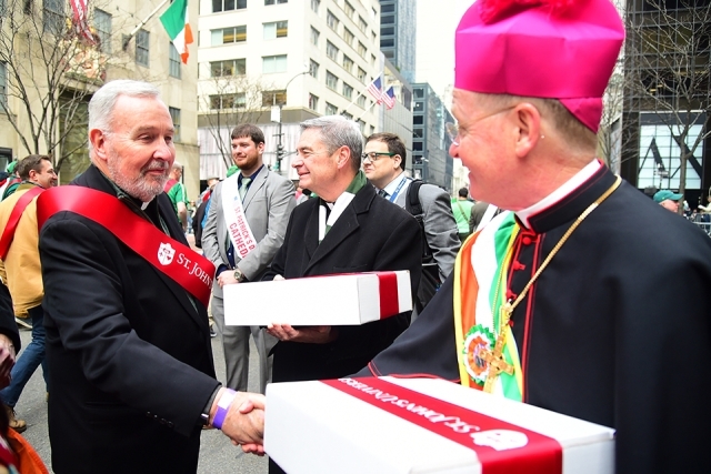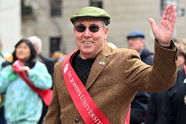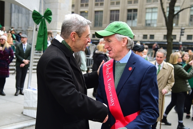 Before stepping off, a special St. John’s alumni brunch was held at Stout New York City on East 41st Street where generations of Johnnies enjoyed Irish food, music, and good cheer. During the breakfast, Martin Whelan ’84CBA was designated Honorary Grand Marshal of the St. John’s parade delegation. Mr. Whelan is President and Majority Partner in the Stout NYC Hospitality Group, and an avid supporter of St. John’s who makes his various bars and restaurants available for University-sponsored events. Stout NYC is the Official bar of St. John's Athletics.