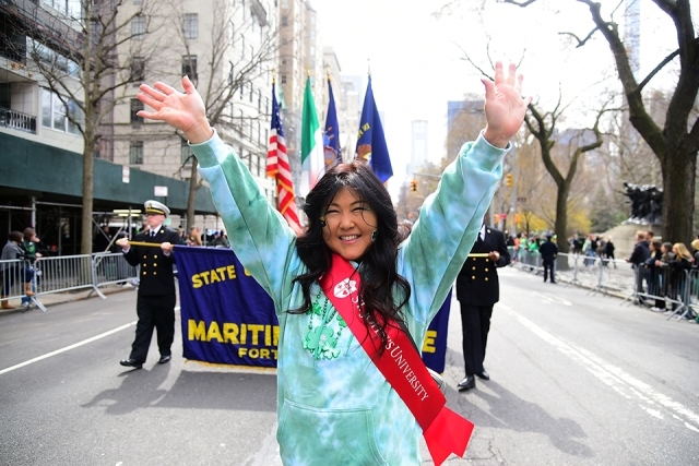 One new participant in the St. John’s parade experience was Vanessa Bethencourt, an international graduate student from Venezuela who is studying International Hospitality Management at The Lesley H. and William L. Collins College of Professional Studies. Having just arrived in the United States in January, Vanessa was impressed with the long history and rich traditions of the New York City St. Patrick’s Day Parade and festivities.