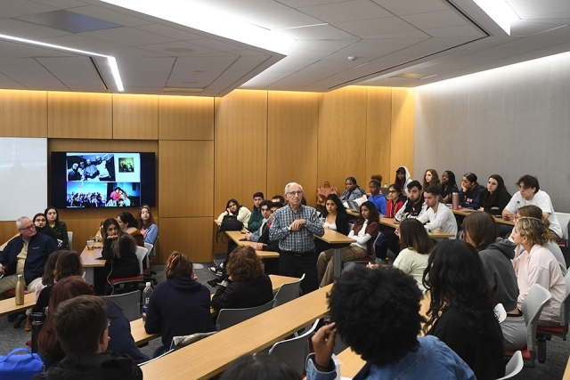 Manfred “Manny” Korman, 91, of Great Neck, NY, addressed an interfaith gathering of students, faculty, administrators, and staff in St. Albert Hall, recalling his experiences as a child refugee separated from his family as the Nazis undertook a systematic genocide that resulted in the deaths of six million Jews from 1933 to 1945.