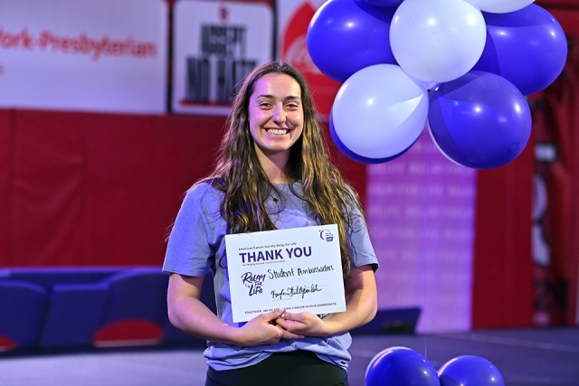 Senior Julianna LoMonte from Northport, NY, has been participating in Relay For Life continuously since middle school. “It’s one of those events that brings everyone together to fight for the same cause,” she said. “We are all after the same goal, so everyone in one place has the same passion—and that leaves you with an immense feeling of strength.”