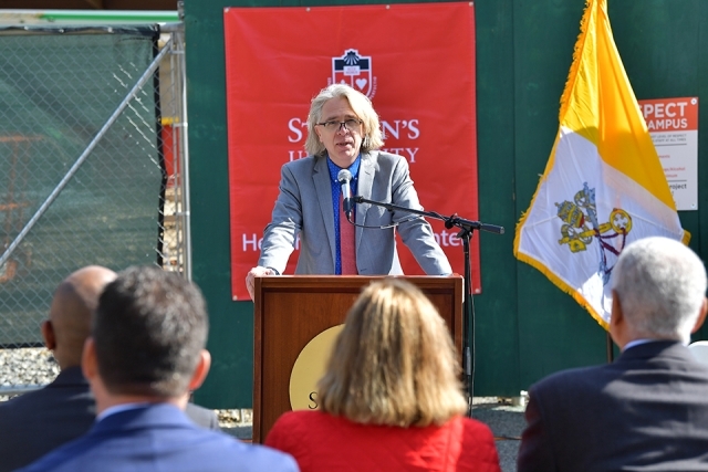 That shared mission was invoked by Rev. Brian J. Shanley, O.P., President, who addressed the crowd by saying, “St. John’s is making a major investment in the health sciences and the people—like nurses and health-care providers who deliver extraordinary service to others—thus living the Vincentian mission.”