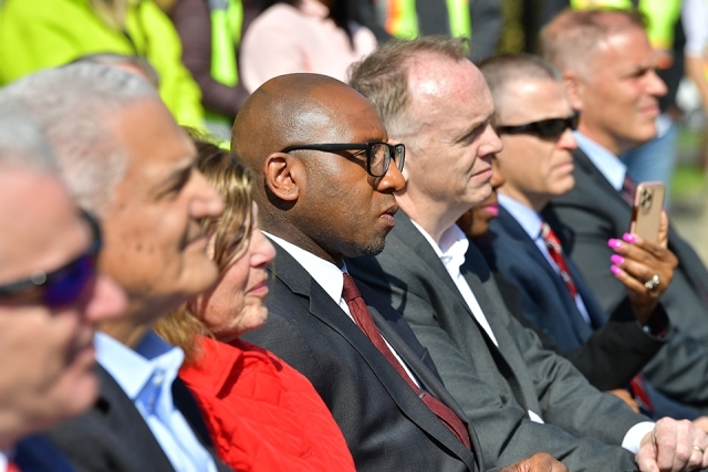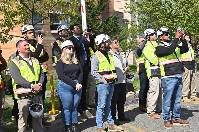 Against the backdrop of a clear blue sky, a crane slowly lifted the special beam and gingerly placed it into its permanent location as a rousing cheer erupted from the crowd. The radiant beam joins 1,137 columns and beams and 875 tons of steel being utilized in the foundation of the innovative learning space.