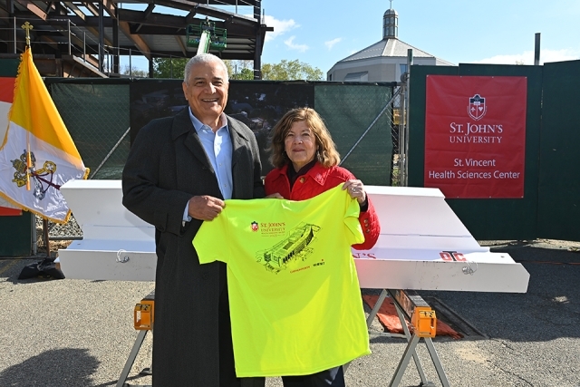Dave Margolius, Executive Vice President of the New York Metro Region, Shawmut Design and Construction, recalled first being exposed to the extraordinary mission of St. John’s when he attended the 25th Annual President’s Dinner last October. “It was an incredible opportunity to see St. John’s values in action,” he said. “Not only was this spirit talked about, but it was made clear how these qualities are lived by everyday folks who do extraordinary things for the St. John’s community and far, far beyond. These are the things we think of when we look at the foundation and structure of this building.”
