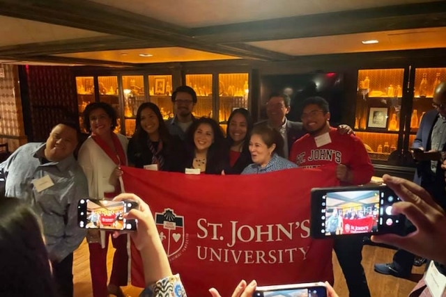 Another popular event was the Hispanic/Latinx Alumni Happy Hour. Hosted by the Hispanic and Latinx Alumni Association chapters on Friday, April 28, at Stout New York City in Bryant Park, Manhattan, the goal of the event was to reconnect and network with all Johnnies, including current students, alumni, faculty, administrators, and staff, as well as meet the next generation of campus leaders.